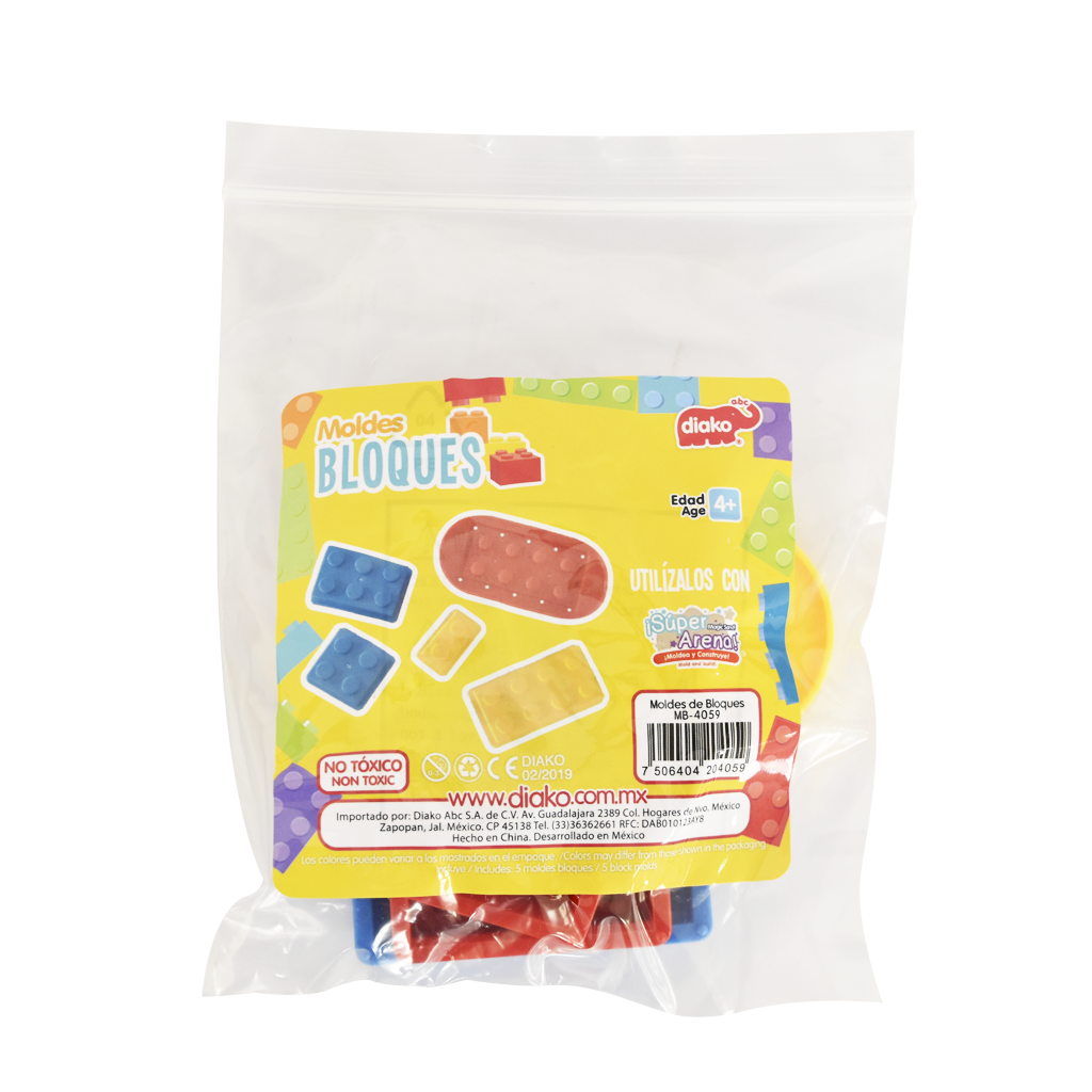 Moldes de plástico para arena o plastilina que simulan bloques apilables. Fortalecen el desarrollo de habilidades: aprendizaje de colores, psicomotricidad fina, imaginación, entre otras.