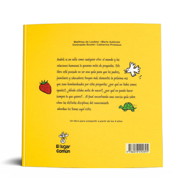 El personaje principal de este libro representa a todos aquellos niños curiosos y que realmente, son todos. Constantemente, Andrés se pregunta sobre el sentido y el funcionamiento de todas las cosas que hay en el universo. Además de ser divertidísimas -y, algunas, conmovedoras- estas páginas serán de gran utilidad para todos los papás que alguna vez se han sentido “bombardeados” por las preguntas de sus pequeños.