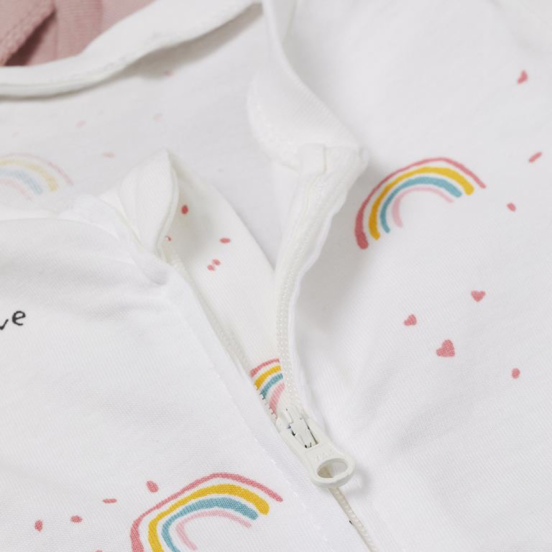 Pijama entero en jersey suave de algodón orgánico con zíper al frente que se extiende por una de las piernas y con protección para la barbilla en la parte superior. Cuello, puños y ruedo en punto elástico.
