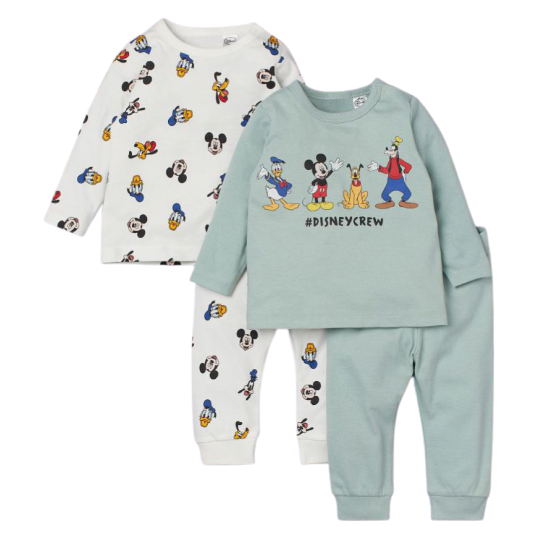 Pijamas estampadas en punto suave de algodón, camiseta de manga larga. Pantalón con cintura elástica y ruedo acanalado.