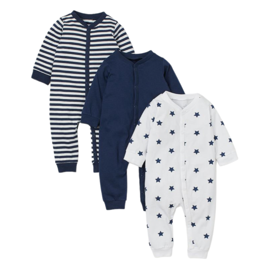 Edad: 2 a 4 meses (3M), 4 a 6 meses (6M), 6 a 9 meses (9M). Contenido: 3 piezas. Composición: algodón orgánico suave 100%.